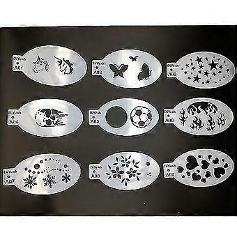 9 Pcs Face Painting Stencils - Body Art Template, Dots Fish Scale, Leopard