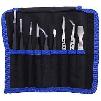 9 Pcs Tweezers Set Stainless Steel Anti-Static Precision Tweezers for Electronic Mobile Phone Repai