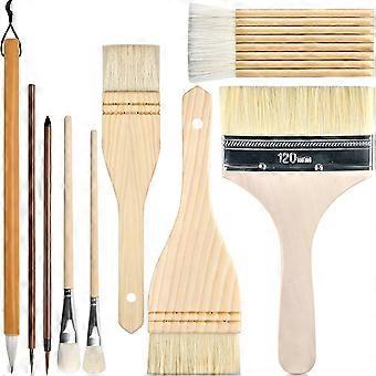 9 Piece Pottery Glaze Brush Set, Wooden Long Handle Glaze Brushes