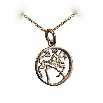 9ct Gold 15mm pierced Sagittarius Zodiac Pendant with a cable Chain 20 inches
