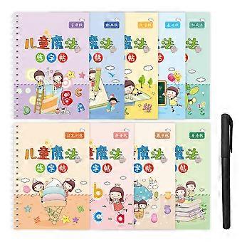 9pcs Grooved Handwriting Books for Kids Number Alphabet Math Drawing Theme Magic Copybook for Kids Educational Early Learning