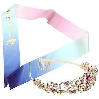 a polished product description based on your input: **1 Set Colorful Crown Sash – Eye Catching Headdress for Women** Add a touch of glamour and
