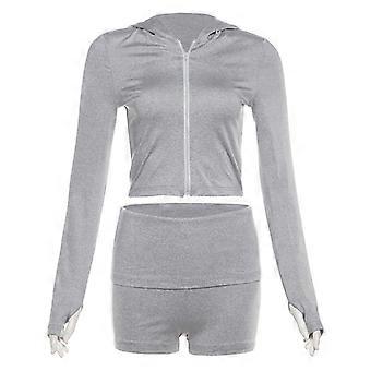 Autumn/Winter Women's Fashion Casual Short Hooded Sweatshirt Jacket Solid Color Slim Fit Shorts Set