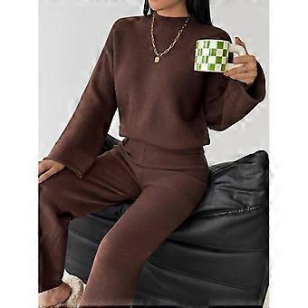 Autumn Winter Casual Solid Color Pullover Sweater Pants Set, Fashionable Long Sleeve Knitwear, Versatile Two-Piece Suit for Women