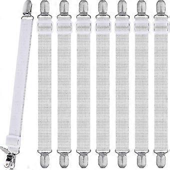 Adjustable Fitted Sheet Grippers, 8Pcs High Elastic Bed Sheet Clips, Max Stretch Bed Sheet Fasteners with Clips for Secure Hold