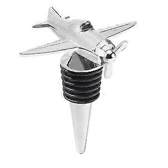Airplane-Shaped Wine Bottle Stopper, Made of Metal with Rubber Seal, Compatible with Standard Wine Bottles, Silver Finish