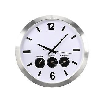 Aluminium wall clock with three country times - Ø 45,5 cm