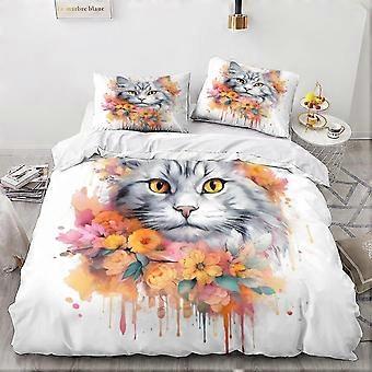 Animal Duvet Cover Set for Cats, 3 Pieces Soft Microfiber 3D Cute Kitty Pattern with Zipper Closure and Pillow Cases