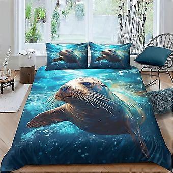 Animal Seal Duvet Cover 3 Piece Set One-sided Pattern Bedding Set Soft Lightweight Microfiber Quilt Cover with Zipper Closure Double