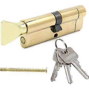 Anti-theft lock cylinder with knob, three keys, various sizes, suitable for all types of doors (45/45T(90mm), brass)