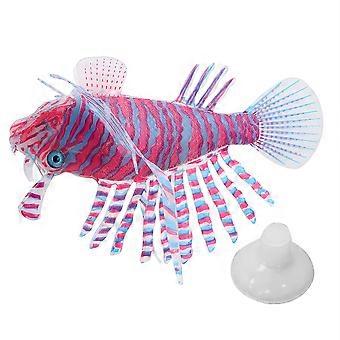 Aquarium Artificial Simulated Silicone Lionfish Luminous Ornament Fish Tank DecorationRed and blue