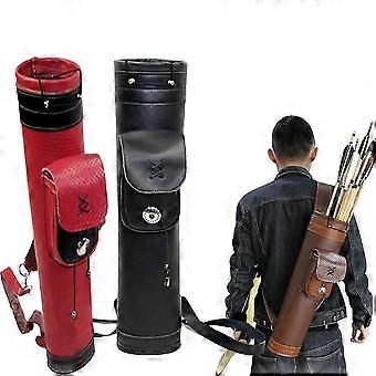 Archery Leather Arrows Quiver Shoulder Straps Belt Back Storage Bag Arrows Holder Bag with Large Pouch for Hunting Shooting Accy