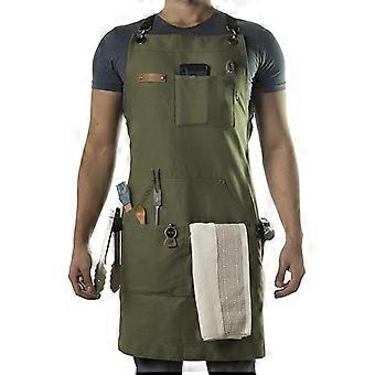 (Army Green) Barber Apron with Tool Pouch - Canvas Apron with Quick Release Buckle, Adjustable Bookbag Buckle, for Men and Women