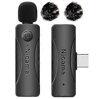 AS12 Type C Wireless Lavalier Microphone with 2 Transmitters Clip on Microphone with Noise Reduction for Smartphones
