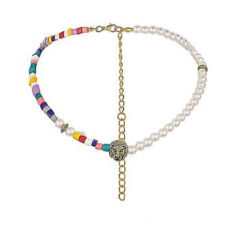 Asymmetrical Animal Color Beads Imitation Pearl Necklace Trend Colorful Clavicle Chain