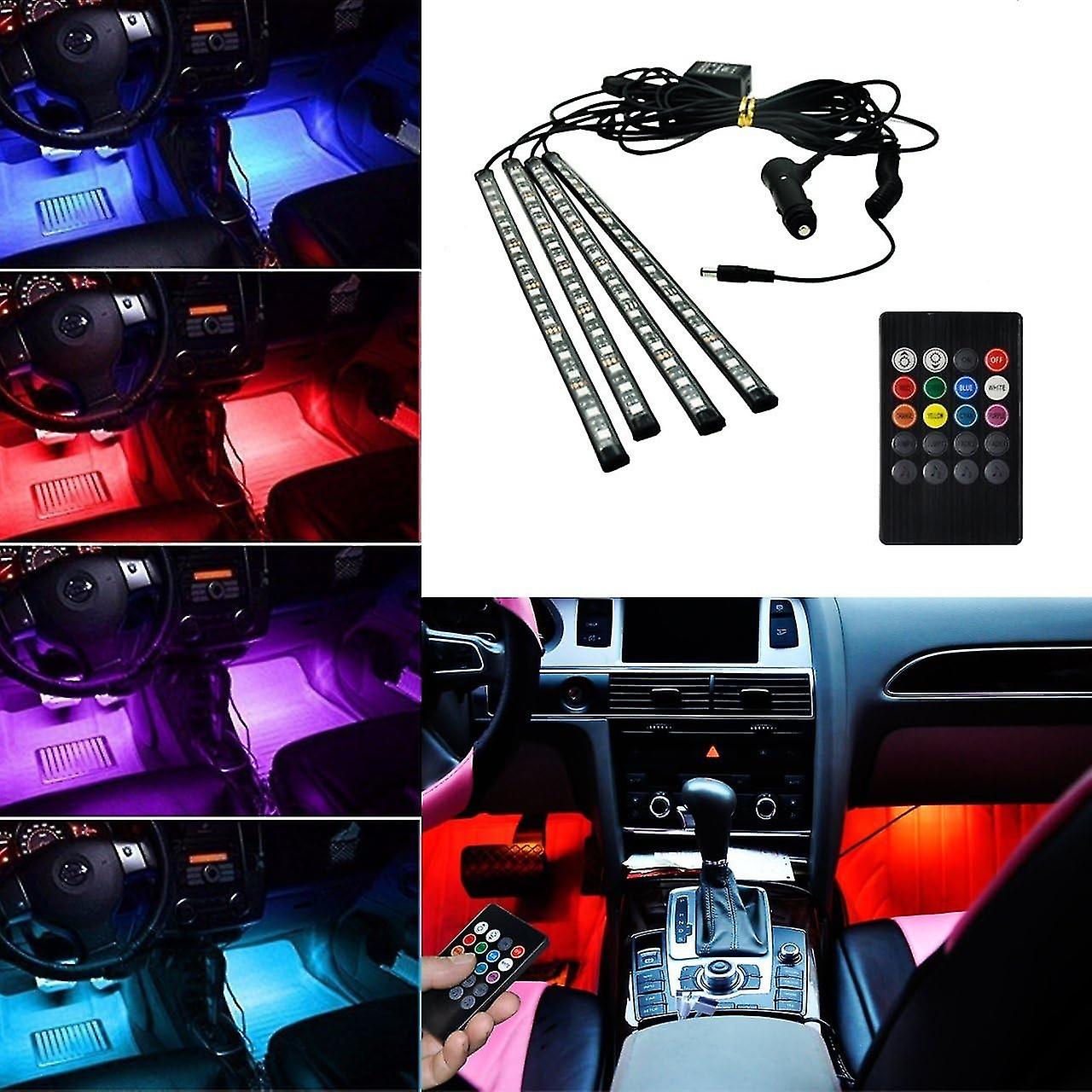 Auto Voiture éclairage intérieur Atmosphère décorative LED bande Kit de lumière 4 en 1 RGB 12V 18 LE