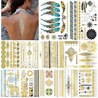 Autocollants de Tatouage En Mtal 12 Feuilles, 150+ Motifs Autocollants de Tatouage Temporaires En Mtal