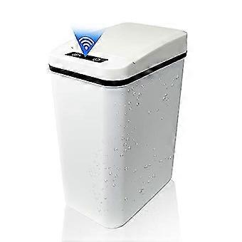 Automatic Touchless Bathroom Trash Can with Lid White Slim Narrow Plastic Smart Motion Sensor Covered Garbage Can