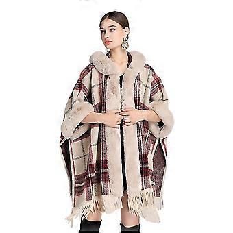 Autumn And Winter Imitation Rex Rabbit Fur Collar Hooded Shawl Cloak