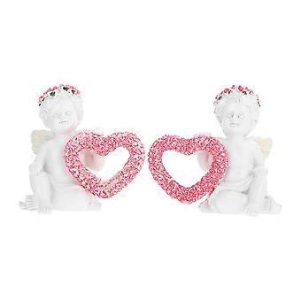 Baby Angel Statue in White Resin for Decor Use with Heart Design 2 Pcs 3.5 Inches