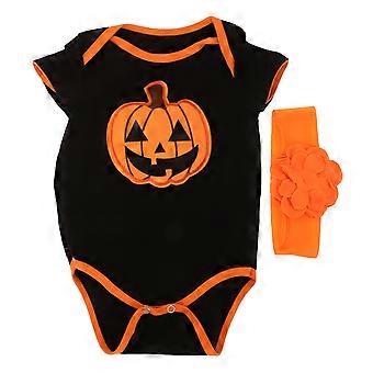 Baby Halloween Costume Set Featuring Pumpkin Romper Suitable For Infants Made Of Soft Cotton With Unique Print Design 2-Pcs Set