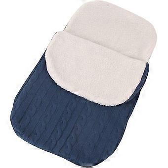 Baby velvet wrapped sleeping bag thickened knitted warm sleeping bag wool trolley sleeping bag dark blue