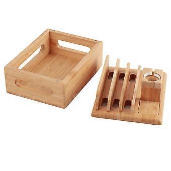 Bamboo Device Organizer Stand Cellphone Tablet Watch Holder Desktop Storage Box Gifts