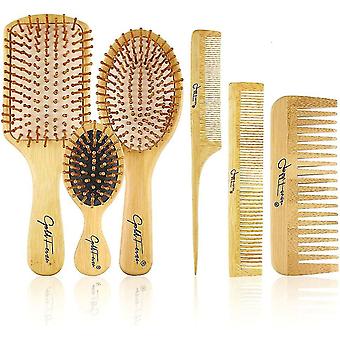 Bamboo Hair Brush Bamboo Handle With Bamboo Bristles Hair Brush Set With Tail Comb, Tooth Comb, Doub