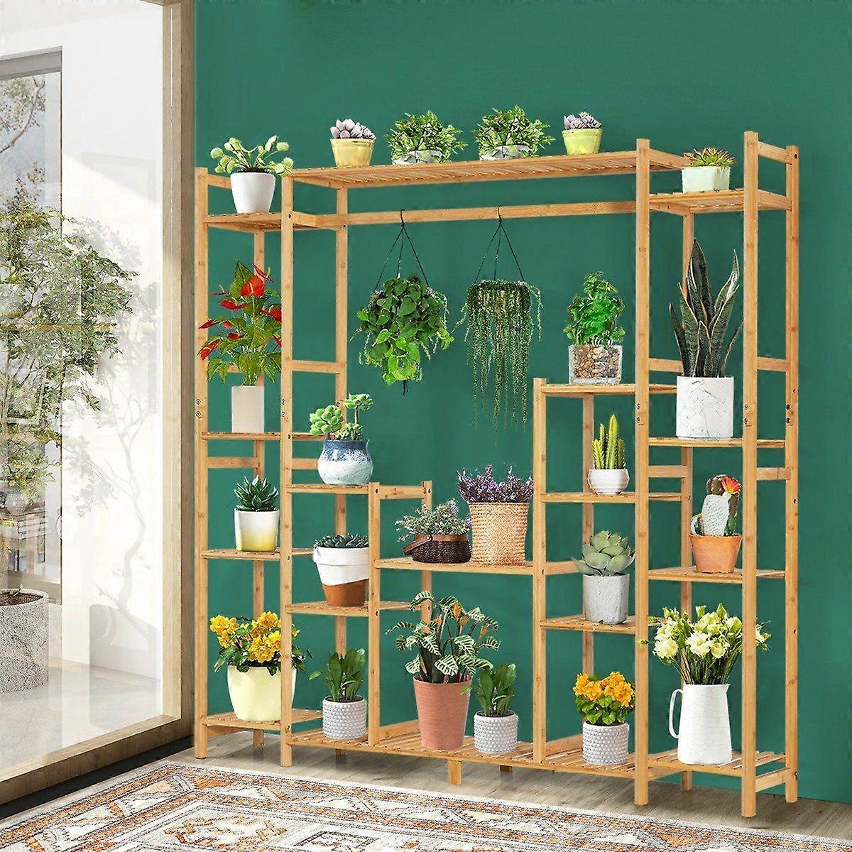 Bambu växthylla med 9 nivåer & hängande ram, stående hylla, rumsavdelare, blomhylla, 167 x 30 x 166