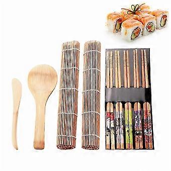 Bamboo Sushi Maker Set Sushi Rolling Mat Kits Sushi Curtain Blade Spoon and Chopsticks Set