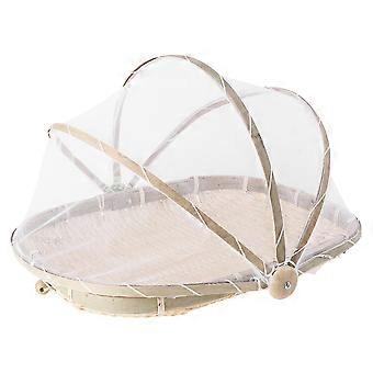 Bamboo Woven Basket with Net Yarn Cover for Storage Khaki Color Lightweight and 1pc