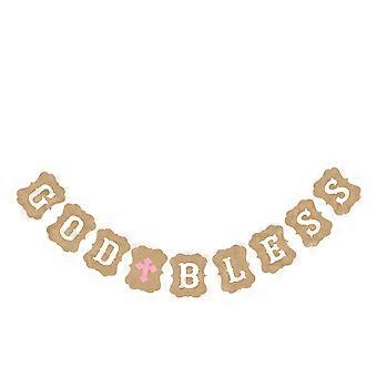 Baptism Party Flags Kraft Paper God Bless Letters Decoration 3 Meters