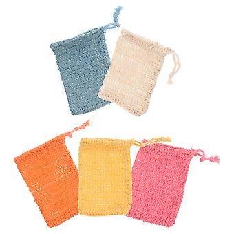 Bath Foaming Soap Cleaning Pouch Drawstring Cotton Linen 5Pcs Pack