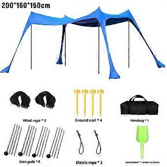 <p>Size: 200*160*150cm / 78.74*62.99*59.05in; 200*210*150cm / 78.74*82.67*59.05in<br/>Color: As shown in the figure<br/><br/>Precautions:<br/>1. Highly efficient sun protection, effectively blocks ultraviolet rays, and provides safe sun protection for beaches, seaside, and outdoor activities.<br/>2. A full set of accessories, including ground nails, stabilizing rods, and sand shovels, can easily cope with various complex terrains, and the installation is stable and more secure.<br/>3. Portable and easy to store design, lightweight elastic bracket structure, quick assembly and disassembly, suitable for camping, fishing, picnics, backyard entertainment and other scenes.<br/>4. Widen and enlarge the sunshade space, which can accommodate multiple people and provide a spacious and comfortable outdoor rest area.<br/>5. High-quality, wind and sand resistant design, adapt to various outdoor environments, is an ideal choice for family outings and outdoor enthusiasts.<br/><br/>Package includes:<br/>1 pc Beach elastic sunscreen canopy</p>