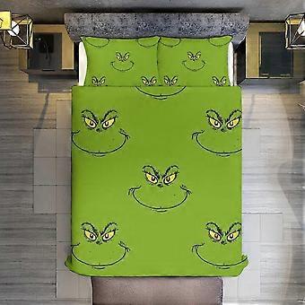 Bedding Set Grinch Smiley Face 3 Pieces Duvet Cover Set Full Size Super Soft Fade Resistant Microfiber 1 Cover with Zipper and 2 Pillowcases