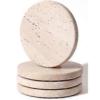 Beige Travertine Coasters Set of 4,Marble Absorbent Coasters 4 '',Ideal for Housewarming Gifts