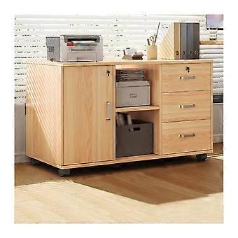 Beige Wooden File Cabinet Under Desk With 3 Drawers 1 Door Lockable Multi Compartment Home Office One Size