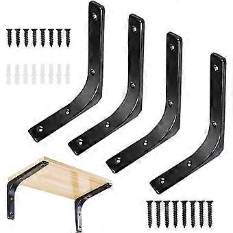 Betterlifefg-4Pcs Black Wall Shelf Bracket Metal Shelf Bracket Wall Fixing Bracket L Shaped Wall Bracket For Furniture Decoration Connection With Scre