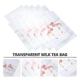 Beverage Packing Cup Bag Flamingos Pattern Portable Takeout Bag Transparent 100Pcs