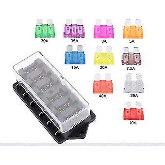 Bh-4p 12v 24v 32v 6 Way Standard Blade Fuse Holder Fuse Box For Boat Camping Car And Other Vehicle, With 10 Blade Fuse