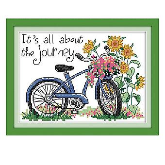Bicycle Travel Pattern Stamped Cross Stitch Kit 14ct Needlework Kit 21x16cm