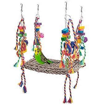 Bird Toys, Bird Foraging Wall Toys Large Size Seagrass Woven Climbing Hammock Swing Mat with Colorful Chew Toys for Little Birds