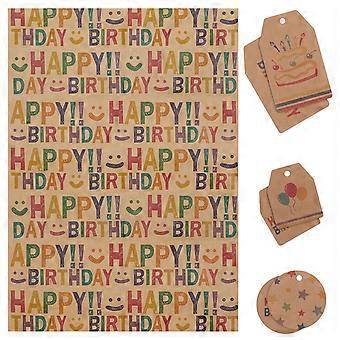Birthday Gift Wrapping Paper Pack Of 6Pcs 33.5x23.6 Inch Design For Baby Showers With Jute String