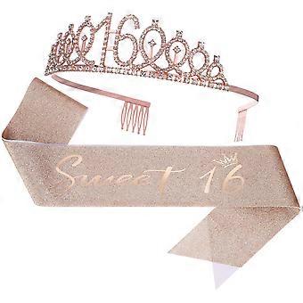 Birthday Tiara and Sash Set Elegant Headband with Crown and Gold Alloy Design for Party Decorations