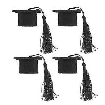 Black Mini Doctoral Caps with Tassel Made of Hard Felt for Adornment 4 Pieces
