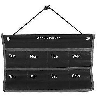 Black Nonwoven Wall Hanging Calendar Pocket for Storage Use with Simple Design Weekly