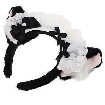 Black Plush Cat Ears Headband 2Pcs with Bowknot for Cosplay Events