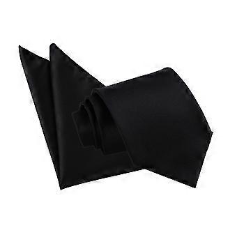 Black Solid Check Tie and Pocket Square Set