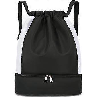 Black Sports Drawstring Bag for Men, Waterproof Rucksack with Shoe Compartment and Wet Pocket, Unisex Stylish Foldable Gym Bag for Swimming Travel Col