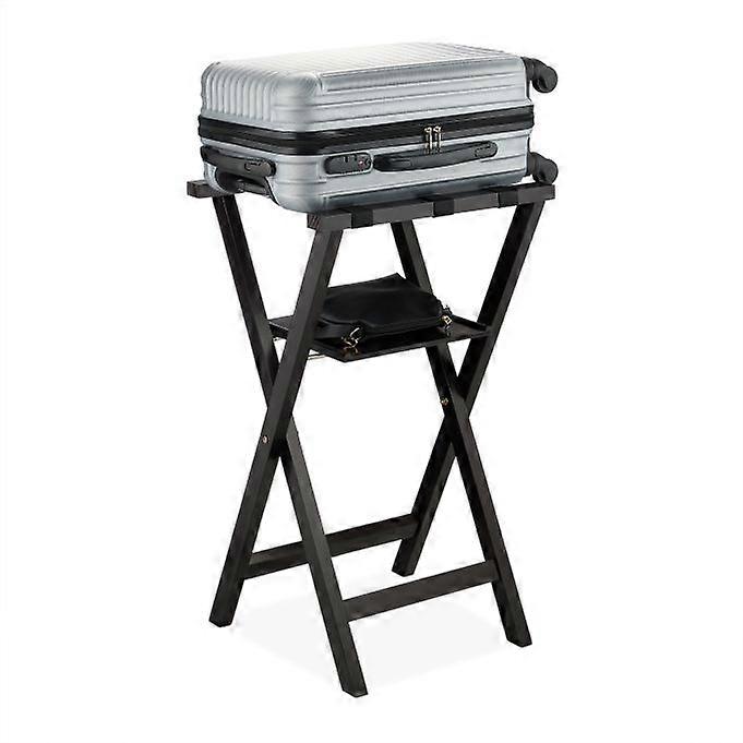 Svart resväskställ med hylla